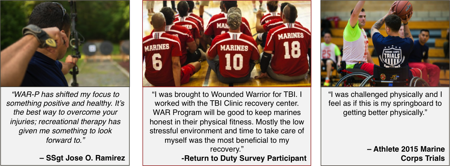 For those Marines who desire to participate in a more competitive environment, the Marine Corps Trials is a great first step. The Marine Corps Trials is more than just a competition; it is a venue for helping Marines improve their athletic capabilities, build camaraderie with other WII Marines, and to select the most qualified athletes for the DoD Warrior Games Marine Corps Team.